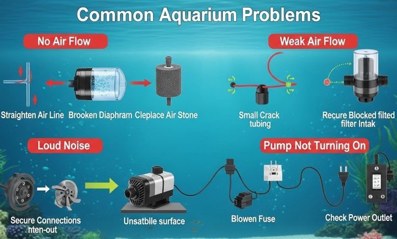 This guide explains how to fix common aquarium air pump problems using simple, step-by-step solutions. We’ll cover issues like air pump not working, weak bubbles, unusual noise, overheating, and proper pump maintenance. Each section starts with a direct answer, then expands with practical steps.